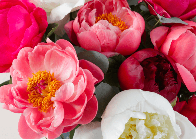 Peonies symbolise prosperity, good luck, love and honour and are therefore a favourite bloom in wedding bouquets as well as the symbol for a 12th Wedding Anniversary